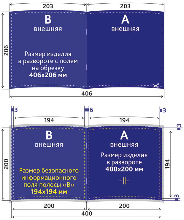 Размер изделия в развороте: 400x200 мм.